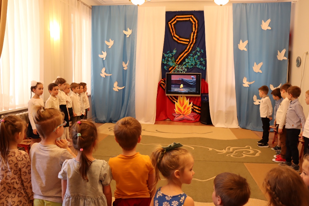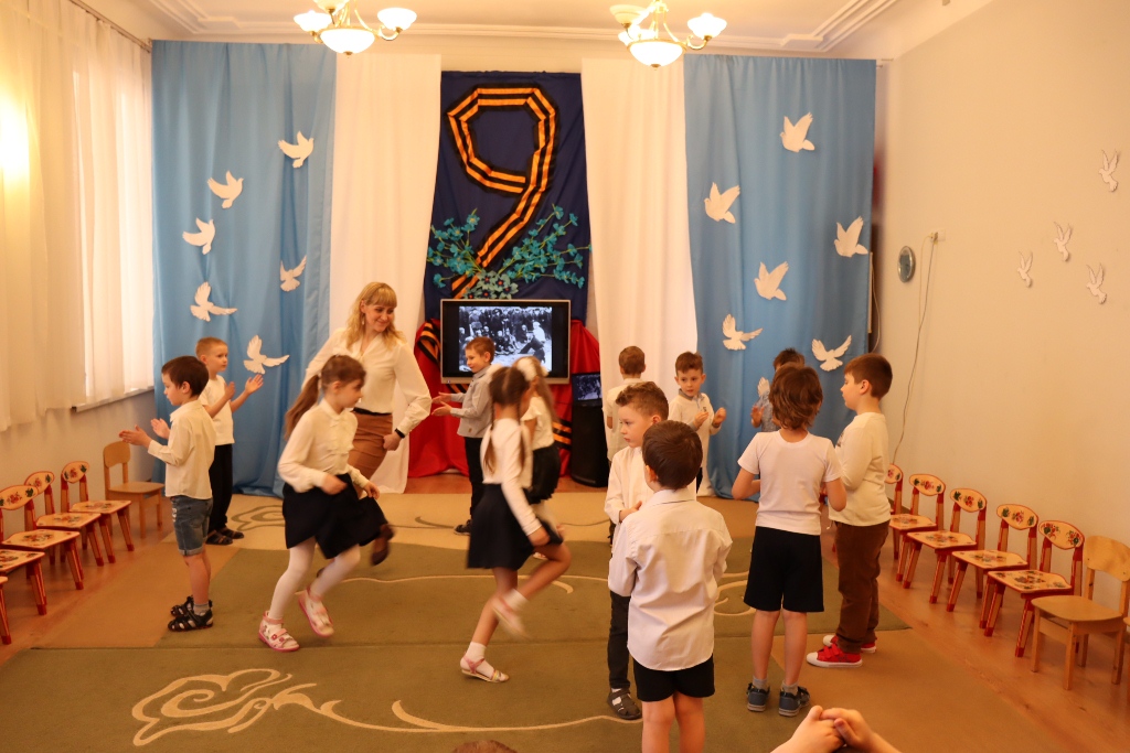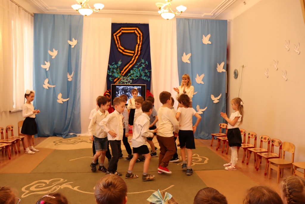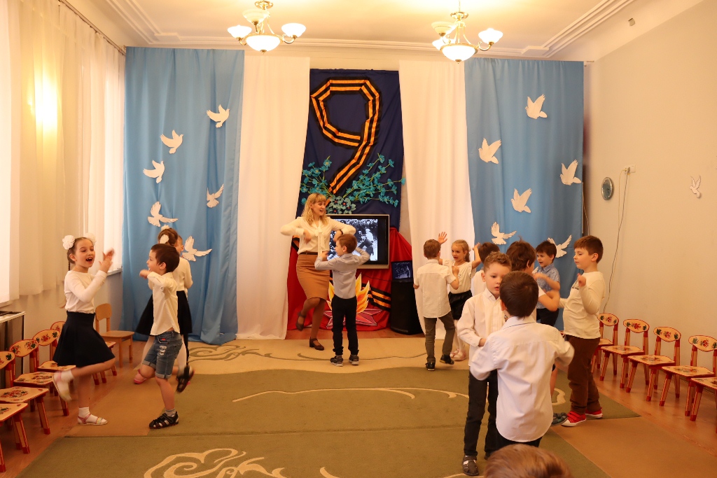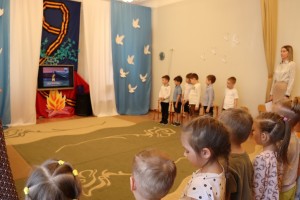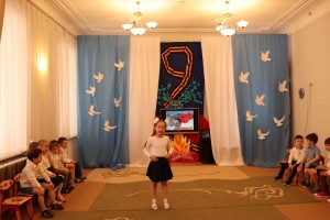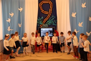 Накануне празднования Дня Победы в нашем детском саду прошел утренник, праздник, посвященный Дню Победы. День Победы в детском саду – это праздник мира, дань мужеству и героизму советских солдат в борьбе с фашизмом. С целью формирования у дошкольников чувство патриотизма, любви к своей Родине и уважения к людям, которые ковали Победу. Всё дальше уходит от нас эта дата – 9 мая 1945 года. Наше поколение не проникнуто тем временем, теми надеждами и страхами. Как рассказать нашим детям об этой Великой Войне? Какие найти слова, чтобы поведать в полной мере о страдании людей, что пережили то время? Как донести суть происходившего грамотно и вызвать маленькой душе чувство гордости, сострадания, почитания, патриотизма? Много сказано слов на тему Победы, много произнесено речей, написано книг, статей, песен, стихотворений, снято кинофильмов. Много ещё скажут, потому что это – огромное горе, которое мы не имеем права забывать. Важно подвести ребенка к пониманию, что мы победили потому, что любим свою Отчизну, Родина чтит своих героев, отдавших жизнь за счастье людей. Их имена увековечены в названиях городов, улиц, площадей, в их честь воздвигнуты памятники. На празднике дети, с чувством особой благодарности читали стихи, исполняли песни, частушки на военную тематику, танцевали. Прекрасная проникновенная музыка песен военной тематики, вдохновенное исполнение дошкольниками песен: “Смуглянка”, “Катюша”, “Бравые солдаты”, “День Победы”, явились восторженным составляющим праздника, внесли яркую ноту в это торжественное мероприятие.