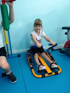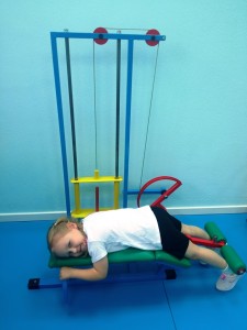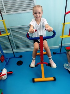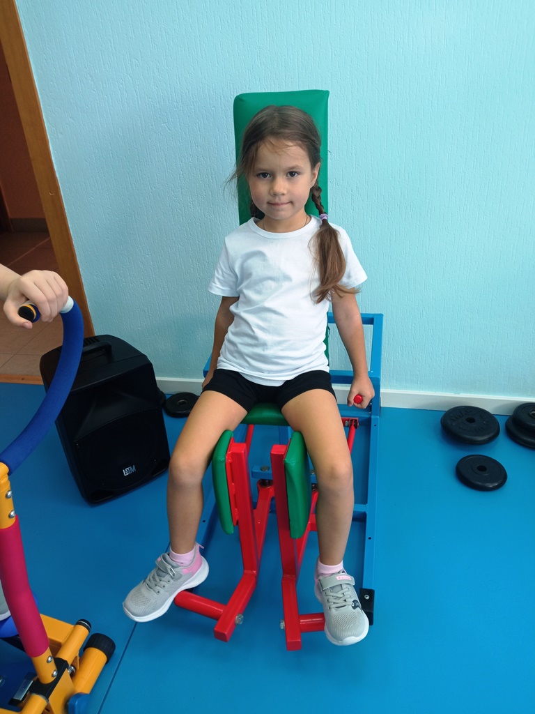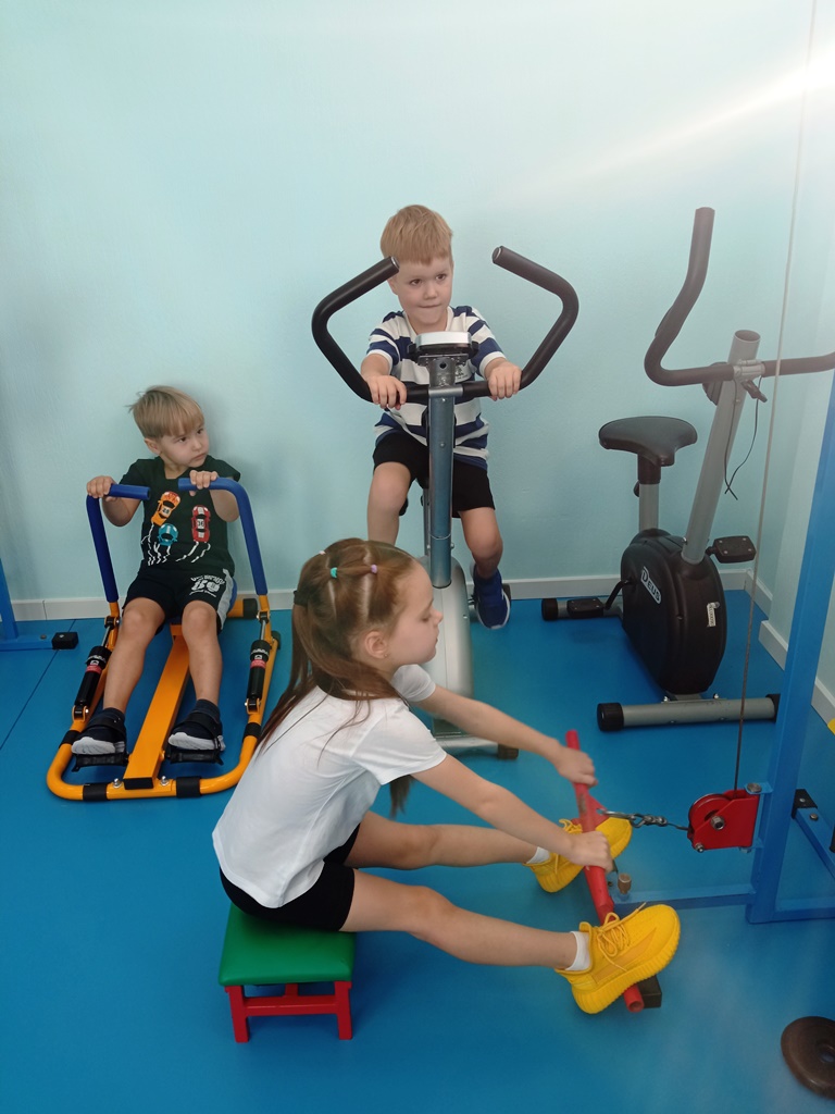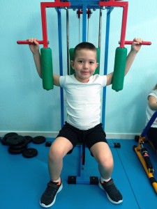 Занятие разделено на два увлекательных блока. Первый блок проходит в тренажерном зале, где ребята с удовольствием занимаются на современных тренажерах, развивая силу и выносливость.