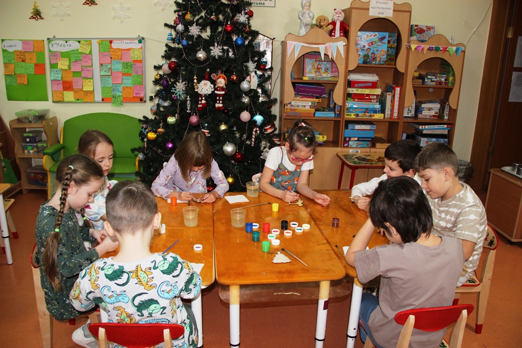 Лёша показал, как можно легко и увлекательно расписывать фигурки, придавая им яркие цвета и индивидуальность. Дети использовали краски, кисти и, конечно же, свою фантазию, чтобы создать уникальные игрушки для нашей новогодней елки.