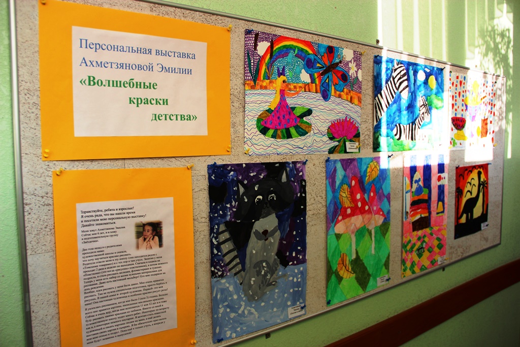 В холле первого этажа нашего детского сада, 26 января, открылась персональная выставка одной юной художницы, воспитанницы нашей группы. Эмилия представила серию своих работ, выполненных в разных техниках. Работы удивляют своими яркими красками и пробуждают фантазию.
