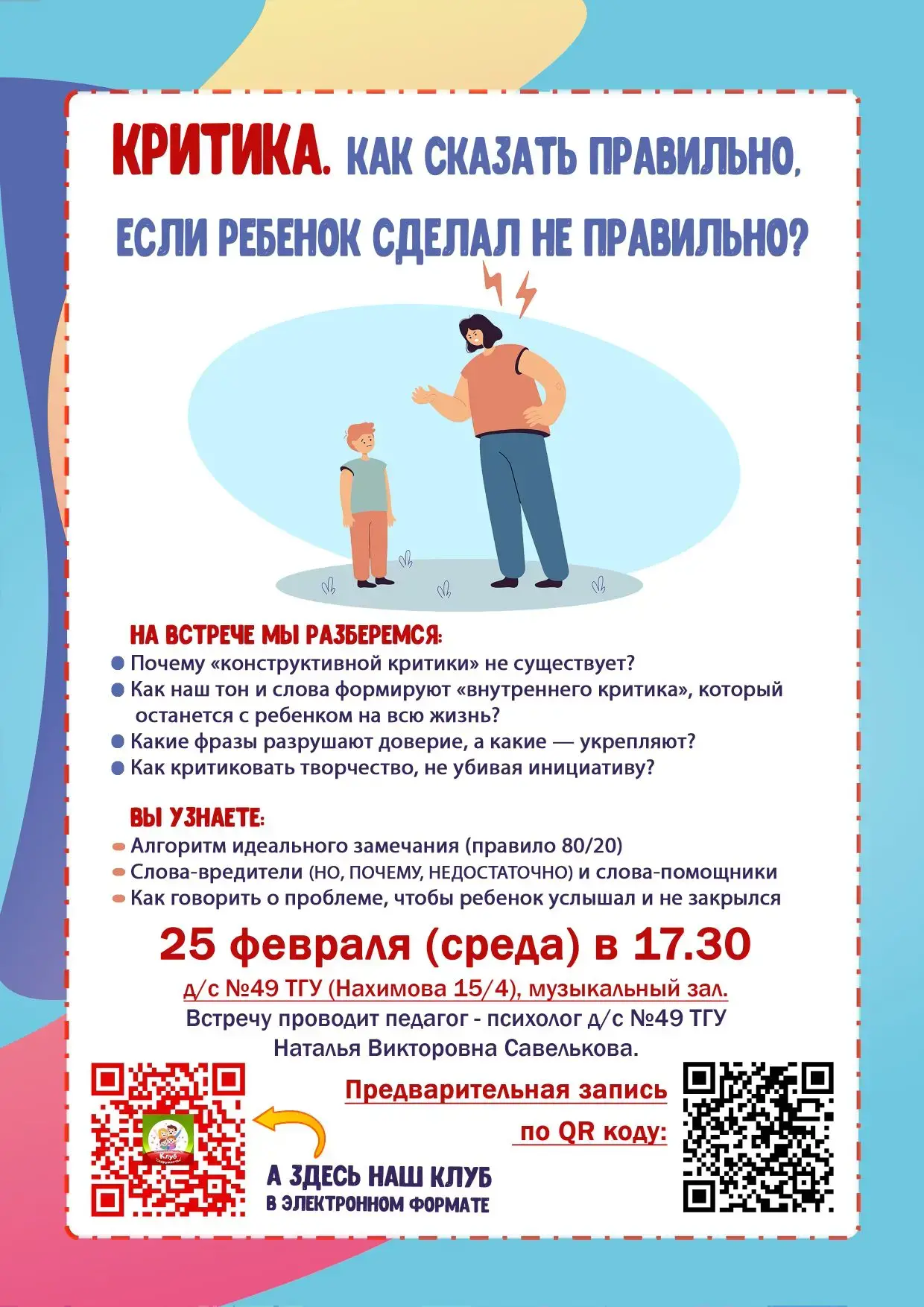 Приходите на встречу родительского клуба, чтобы: