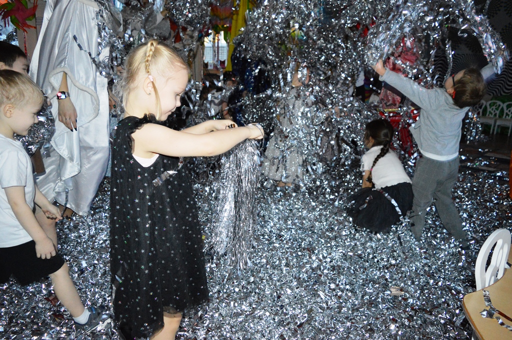Восторгу ребят не было предела! Сияющие потоки блестящих ленточек осыпали всех, создавая ощущение полного погружения в сказку. Дети с радостными криками ловили сияющие искорки, кружились в блестящем вихре и делились своими неподдельными эмоциями. Это был поистине волшебный момент, который оставил в сердцах каждого ребенка самые теплые и яркие воспоминания.