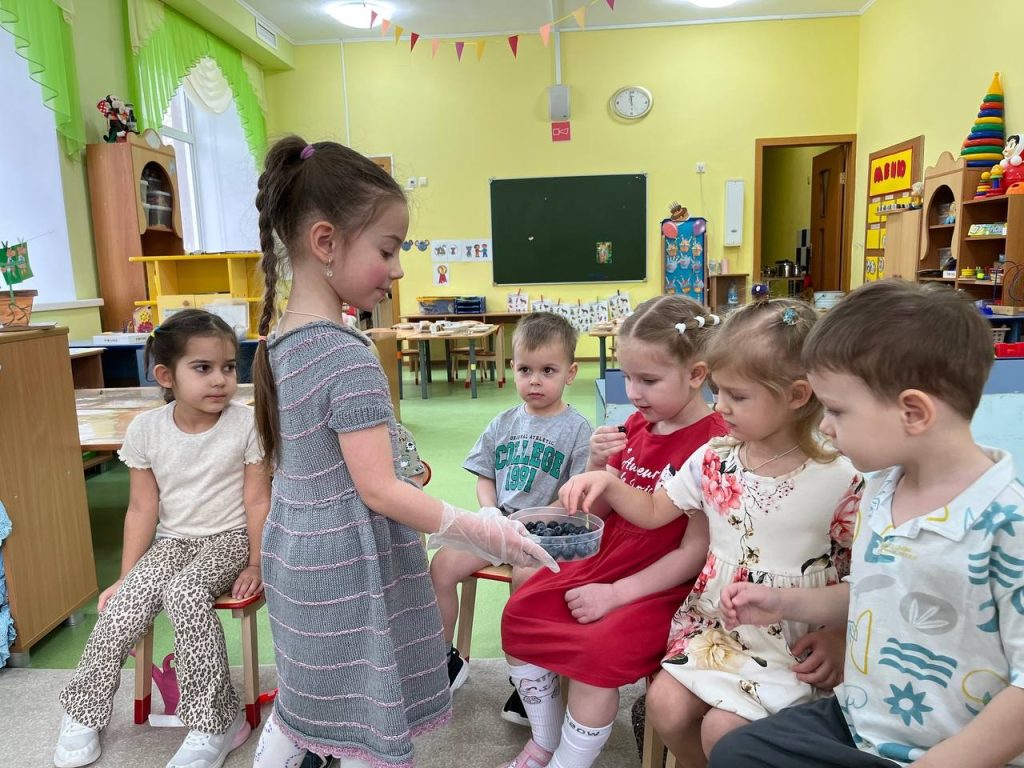 А в конце встречи гости устроили настоящий сюрприз — угостили малышей сладкой и полезной голубикой!